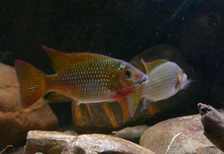 Substraatlegger op stenen of op de boden van het aquarium. Graaft legholen. Grote legsels van honderden jongen zijn mogelijk. De ouders hebben moeite om hun legsels en jongen langdurig te verdedigen tegen rovers.  Deze vis stelt geen eisen aan de waterkwaliteit.