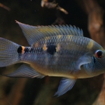 Jury: De derde plaats was moeilijk te kiezen en de T. pasionis en 'Lamprologus' speciosus waren ook zeer goed. De laatste vertoonde niet echt gedrag. We hebben voor de fryeri gekozen omdat die prima laat zien dat de soort een viseter is, wat veel liefhebbers vaak niet weten. Er is wat zweefvuil in the foto maar dat was waarschijnlijk tijdens het vangen van de prooi (juveniel van Copadichromis borleyi Kadango waarschijnlijk) opgewarreld.