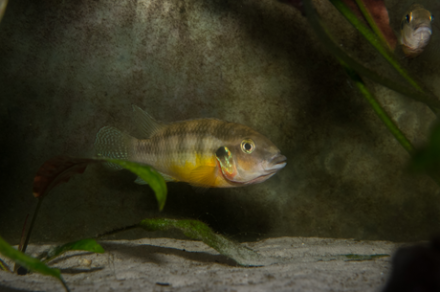 Ovofiele muilbroeder waarbij het vrouwtje de broedzorg pleegt. De eieren worden in een hol afgezet. Nestgrootte ca 30 eieren. Hierbij ligt de ph rond de 7.